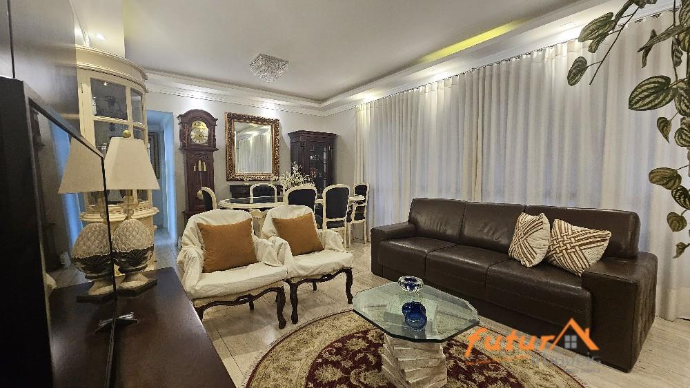 SALA AMPLA COM DOIS AMBIENTES E SACADA, 03 DOMITÓRIOS SENDO UMA SUÍTE COM HIDRO E CLOSET, BANHEIRO SOCIAL, AMPLA COZINHA, LAVABO, ÁREA DE SERVIÇO, ESCRITÓRIO E WC.