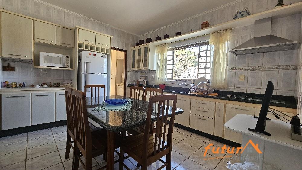 SALA COM DOIS AMBIENTES E VARANDA, 03 DORMITÓRIOS SENDO UMA SUÍTE, ARMÁRIOS, CLOSET, LAVABO, BANHEIRO SOCIAL, COZINHA COM ARMÁRIOS, LAVANDERIA, PISCINA, CHURRASQUEIRA, BANHEIRO, 02 GARAGENS AMPLAS PARA 03 AUTOMÓVEIS CADA, HORTA, POMAR, DEPÓSITO.