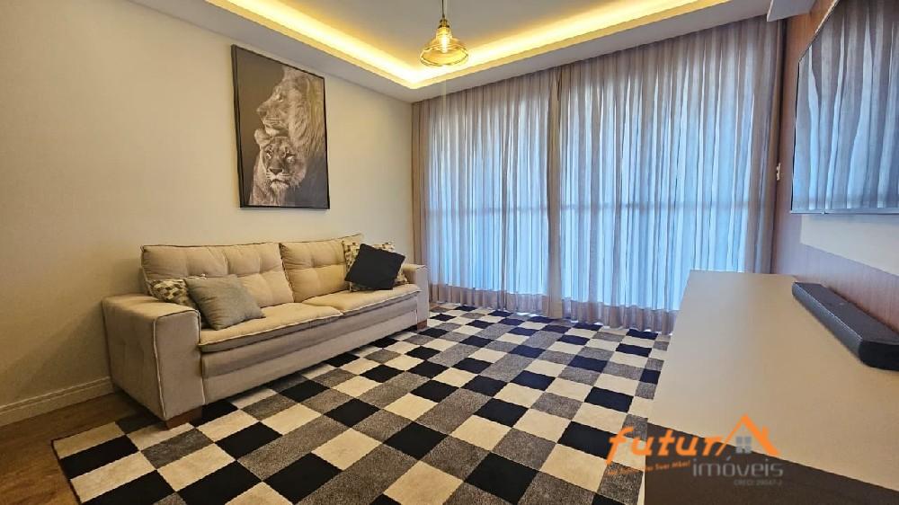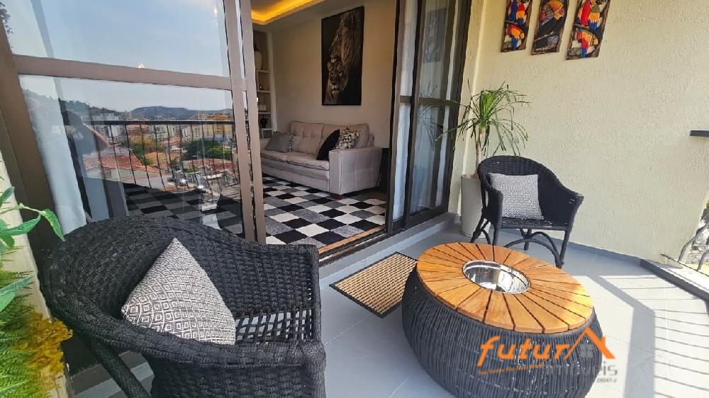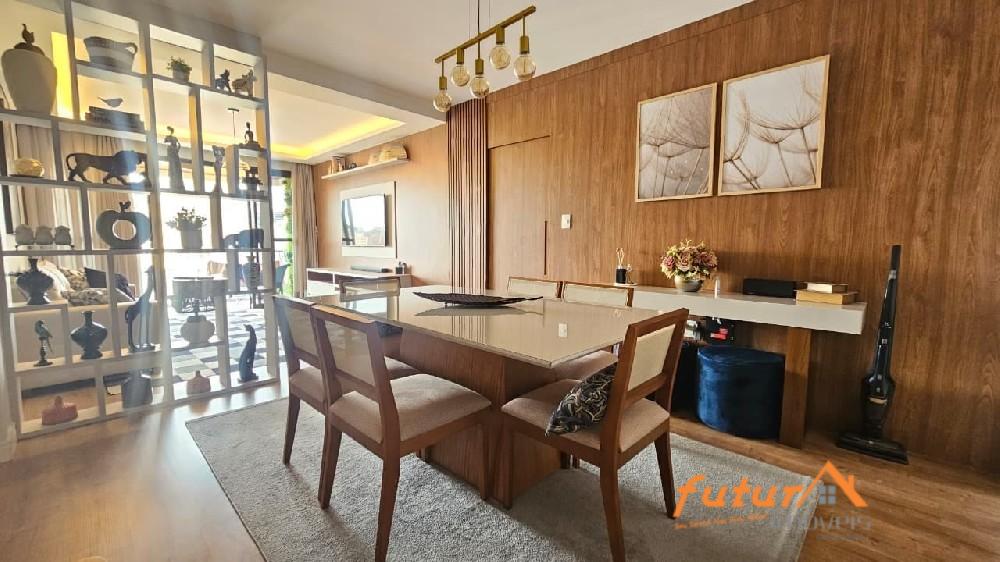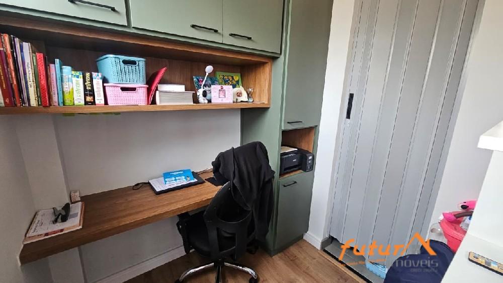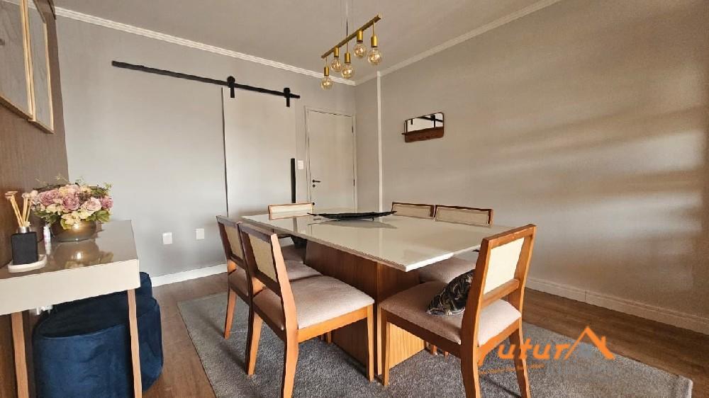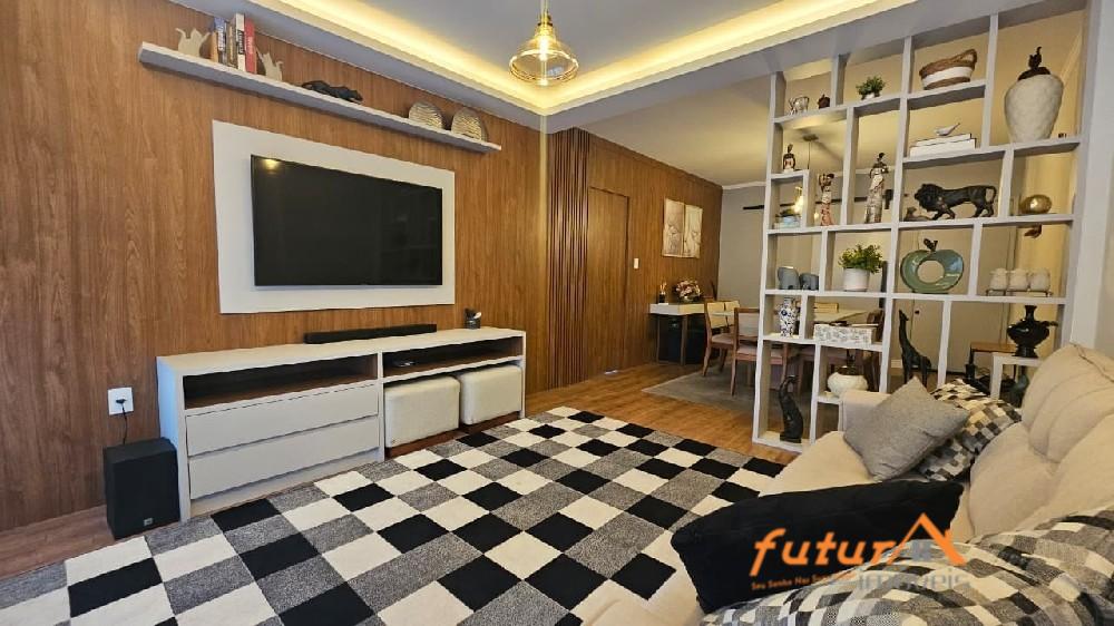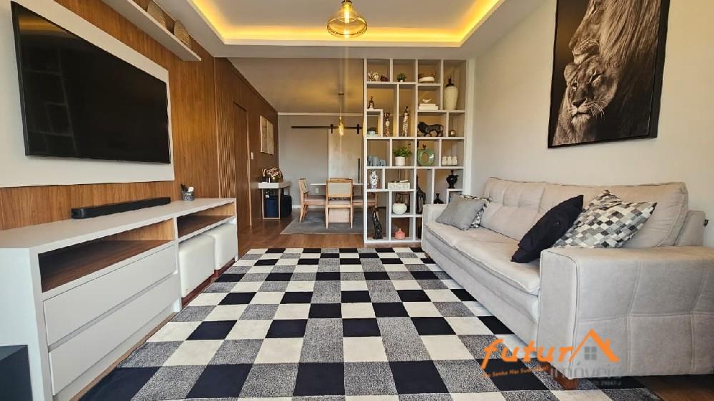 SALA AMPLA COM DOIS AMBIENTES E SACADA, 02 DORMITÓRIOS SENDO UMA SUÍTE, ARMÁRIOS PLANEJADOS, BANHEIRO SOCIAL, COZINHA, ÁREA DE SERVIÇO, ESCRITÓRIO, WC, GARAGEM.