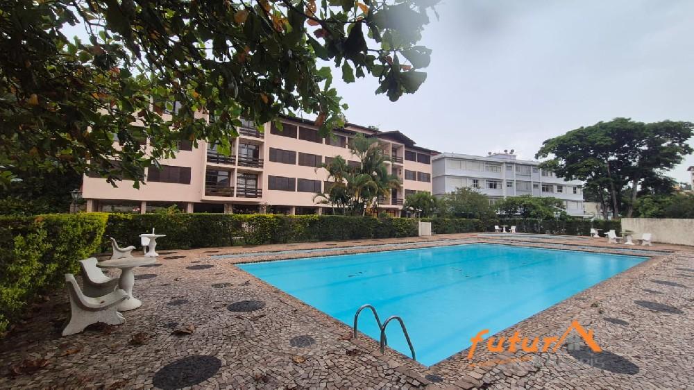 PRÉDIO COM PISCINA E CHURRASQUEIRA.
