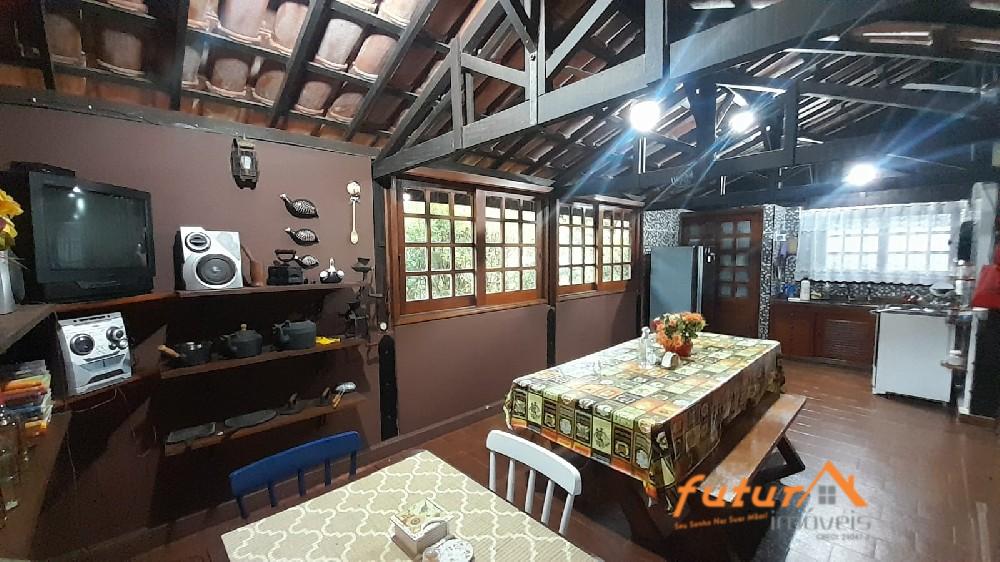 CASA COM 02 DORMITÓRIOS, SALA COM LAREIRA, BANHEIRO SOCIAL, COZINHA, 03 SUÍTES EXTERNAS COM VARANDA, COZINHA, SAUNA SECA, BAR, BANHEIRO, SALA SOCIAL, ESPAÇO GOURMET COM CHURRASQUEIRA, FORNO DE PIZZA, PISCINA, JARDIM, POMAR E CANIL.