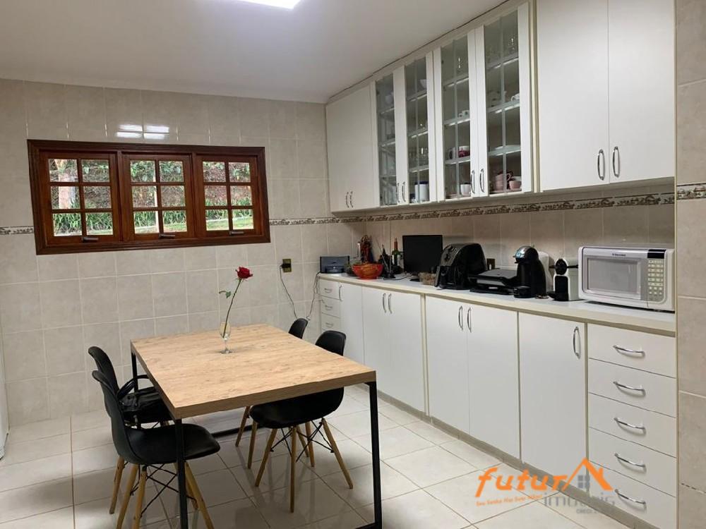 03 DORMITÓRIOS SENDO UMA SUÍTE, SALA AMPLA COM LAREIRA, MEZANINO, BANHEIRO SOCIAL, COZINHA COM ARMÁRIOS, DEPENDÊNCIA DE EMPREGADA COM BANHEIRO, VARANDA, GARAGEM, CASA DE HÓSPEDES, AQUECIMENTO SOLAR, ENERGIA FOTOVOLTAICA.